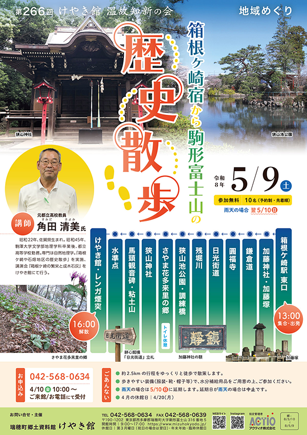 第266回 けやき館 温故知新の会 地域めぐり「箱根ケ崎宿から駒形富士山の歴史散歩」