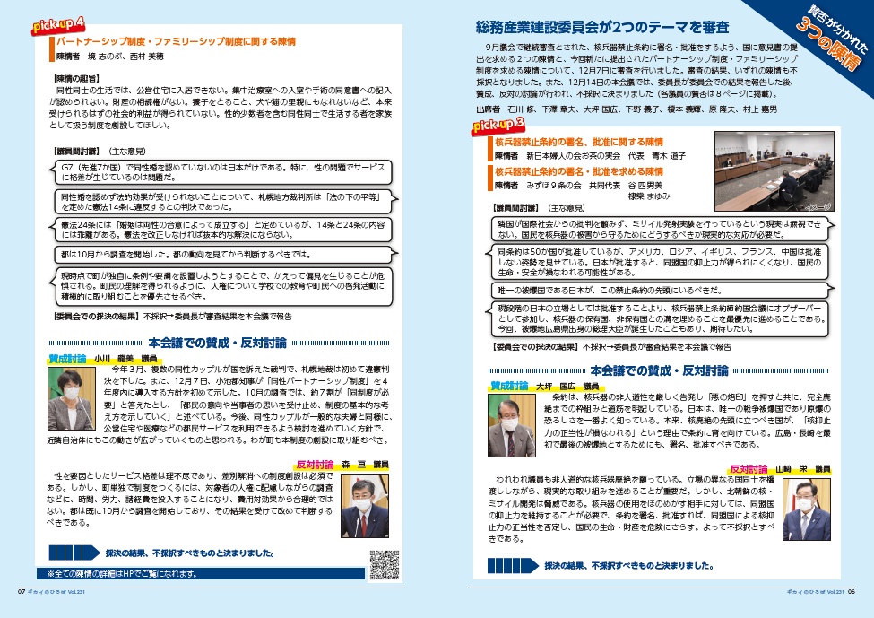 議会だよりPDF令和3年度(Vol.228からVol.231)
