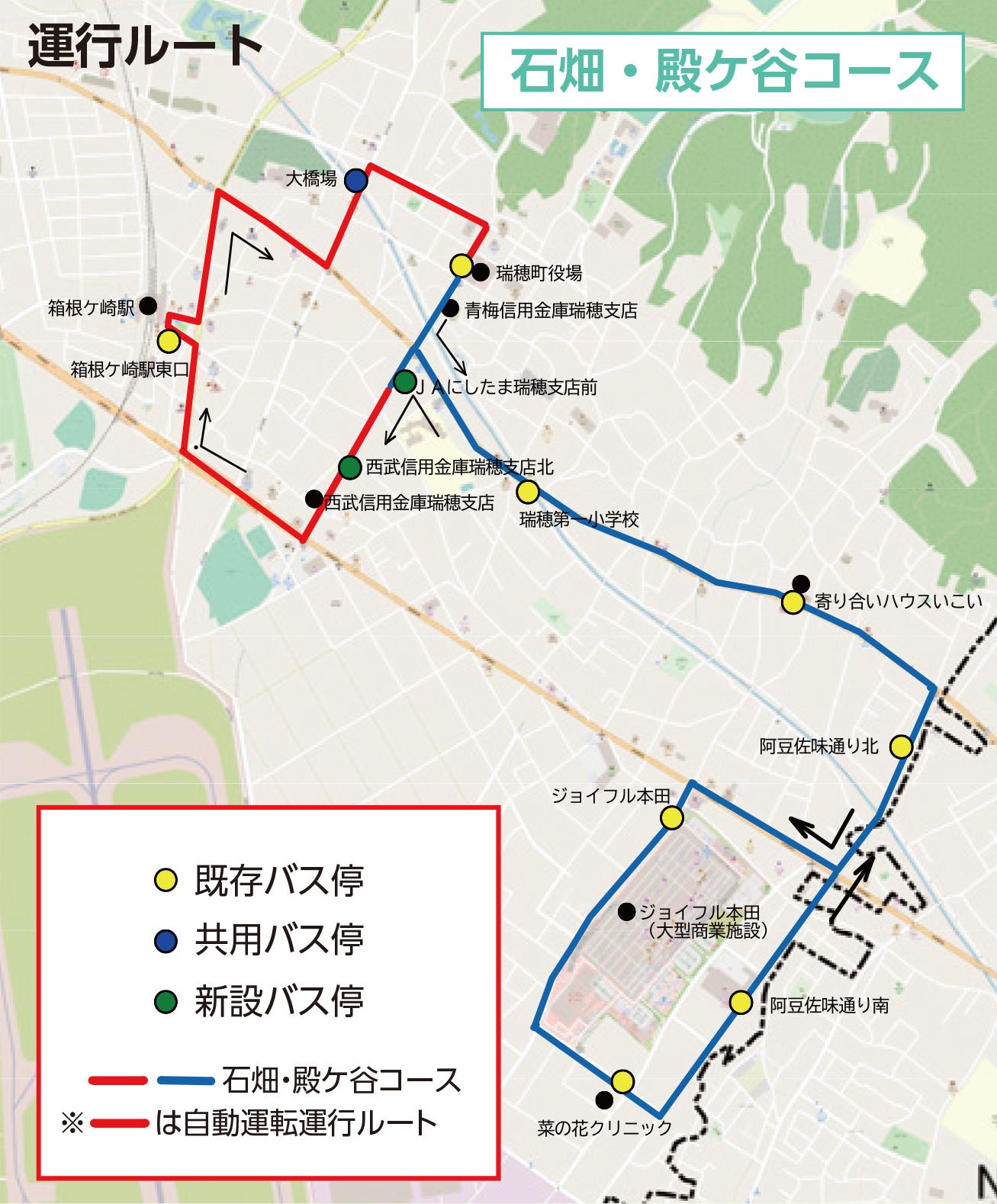 【石畑・殿ケ谷コース】1周約7.5kmのコースで、一部区間を自動運転レベル2で運行します。