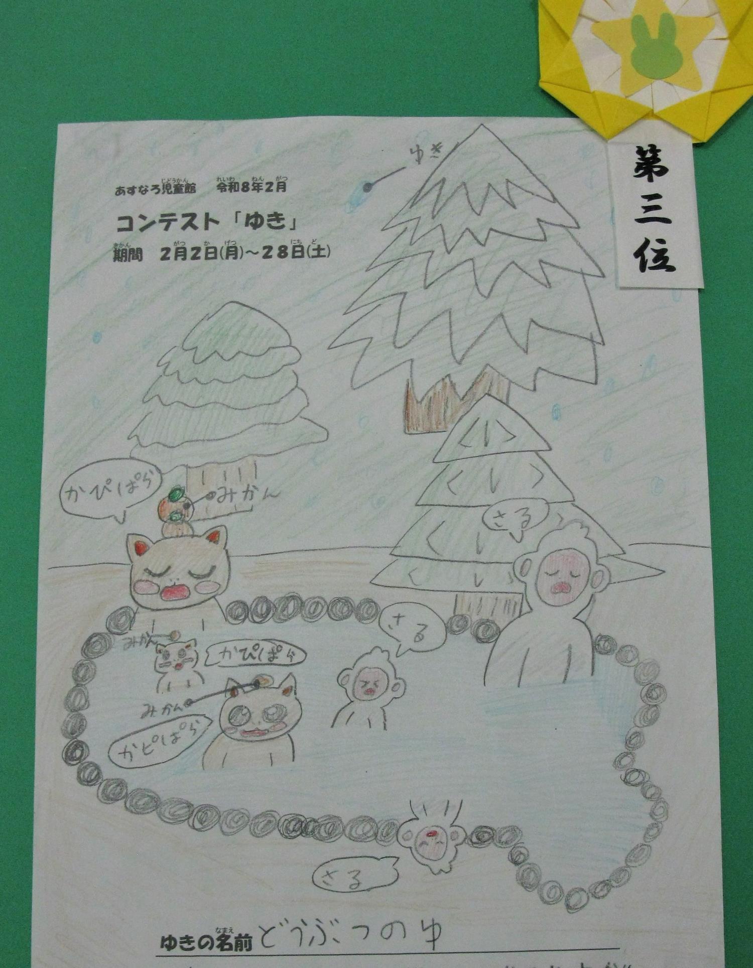 選考後、入賞作品(応募作品)は4月30日(木曜日)まで児童館に展示していますのでご覧ください。