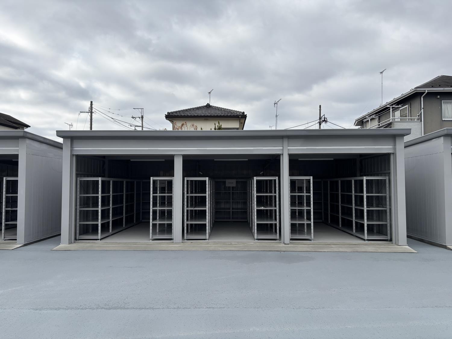 令和8年2月に、石畑防災広場拡張整備工事が完了しました。新しく整備された防災倉庫エリアには、災害に備えるための防災倉庫を3棟設置しています。