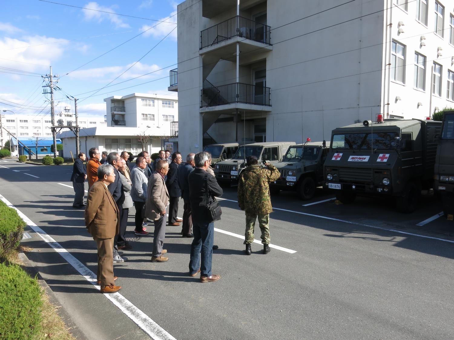 近年では災害派遣活動を行っている自衛隊の活動を知り、災害について考えることを目的として、群馬県新町駐屯地を視察しました。