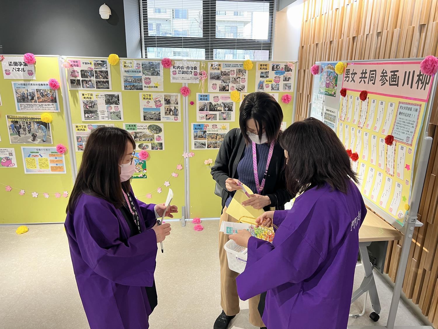 役場庁舎1階ロビーで、町内会・自治会への加入促進を図ることを目的として「パネル展」を開催しました。役員が訪れた方々に町内会・自治会の活動内容などを説明しました。
