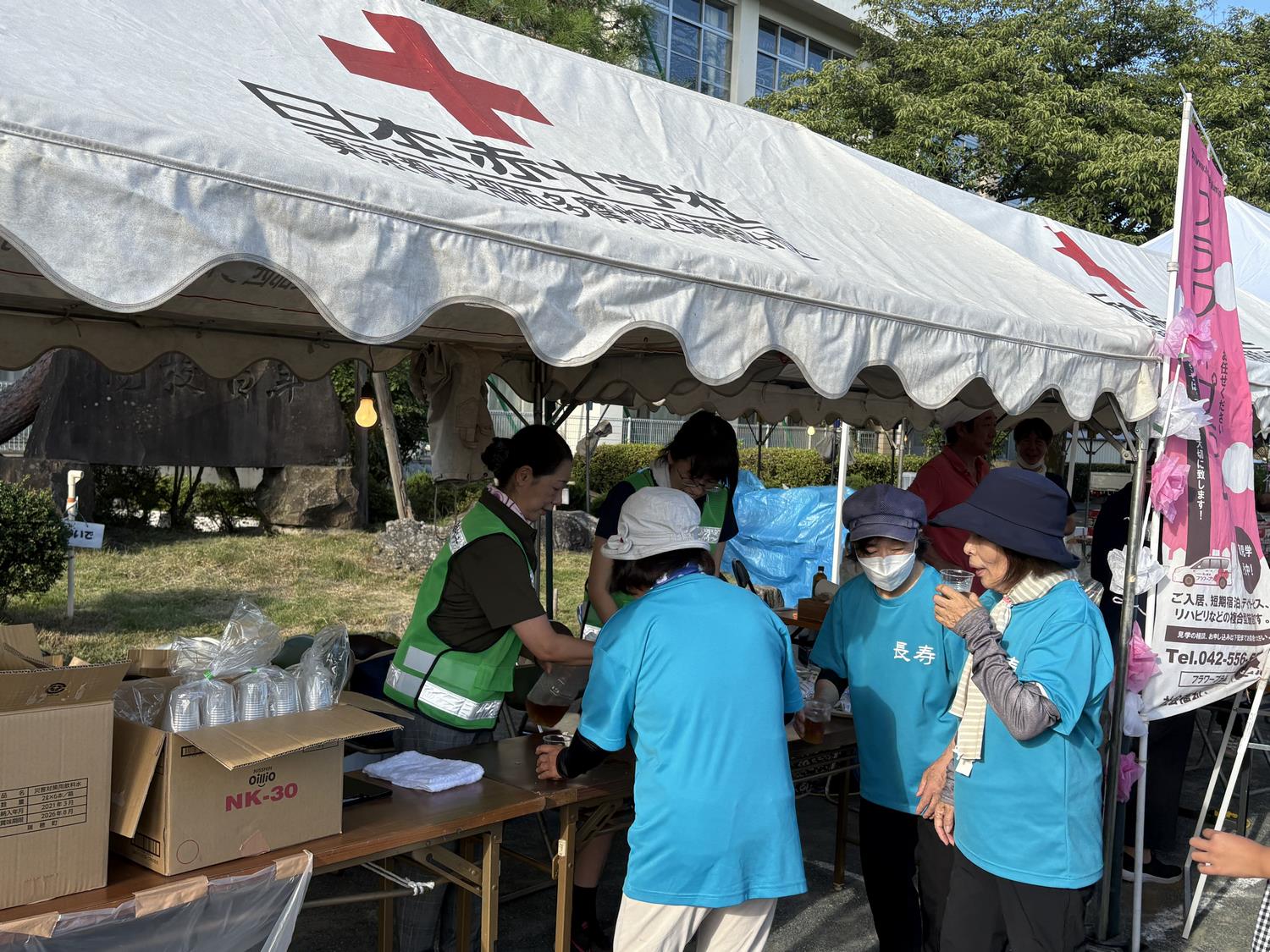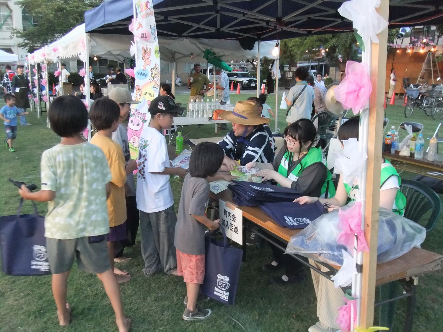 会場は多くの方で賑わう中、職員地域情報コーディネーターは、午前中はテント張り、電線設置、やぐらの飾付等の会場設営を手伝い、午後は、麦茶の配布、町内会加入促進ブースを担当しました。地域に住む多くの方々とコミュニケーションを図ることは、通常の業務中では得難い体験となりました。