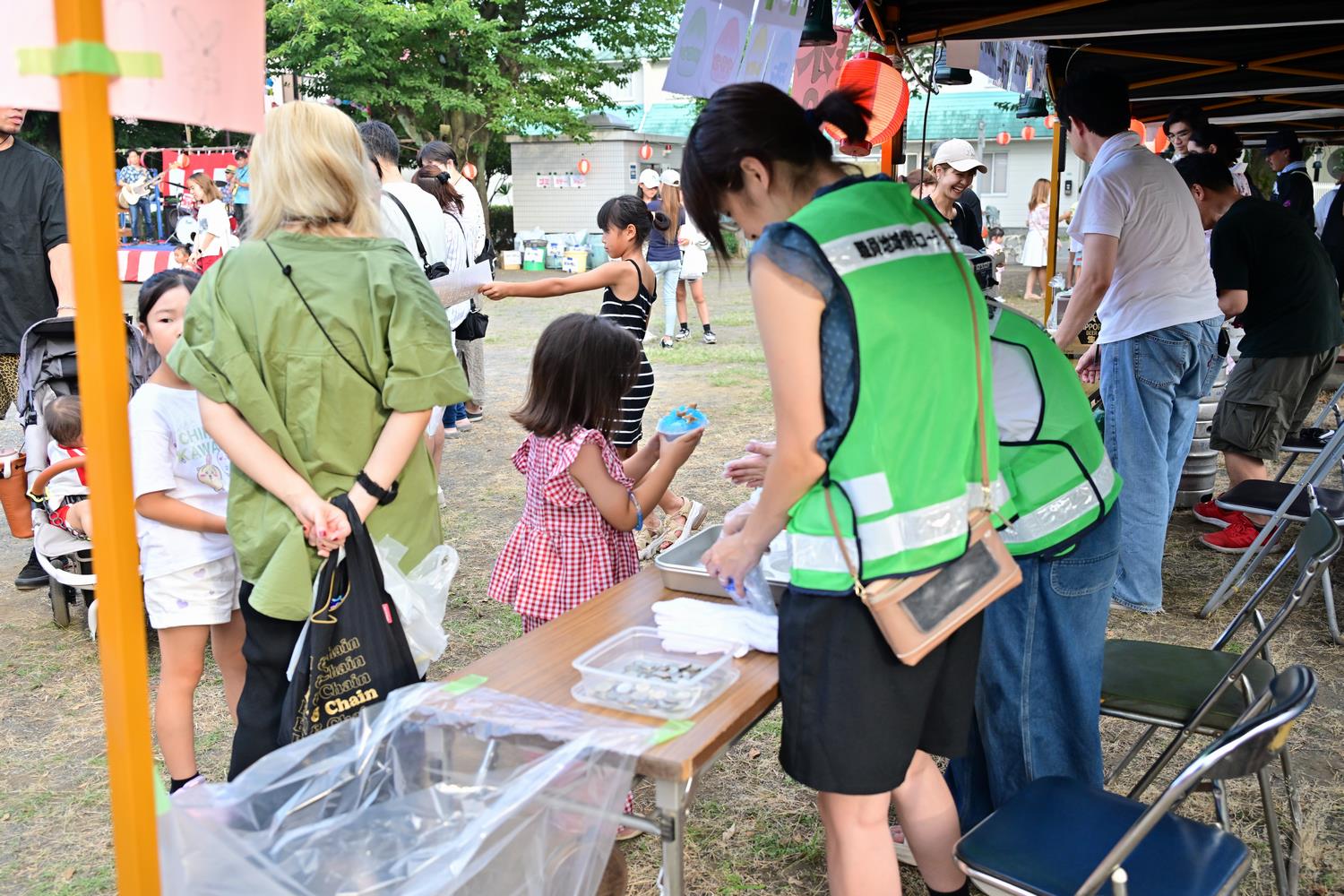 令和7年8月2日(土曜日)、富士山町町内会「夏祭り」に町職員4人が、さかえ町町内会「納涼祭」に町職員3人が職員地域情報コーディネーターとして参加しました。