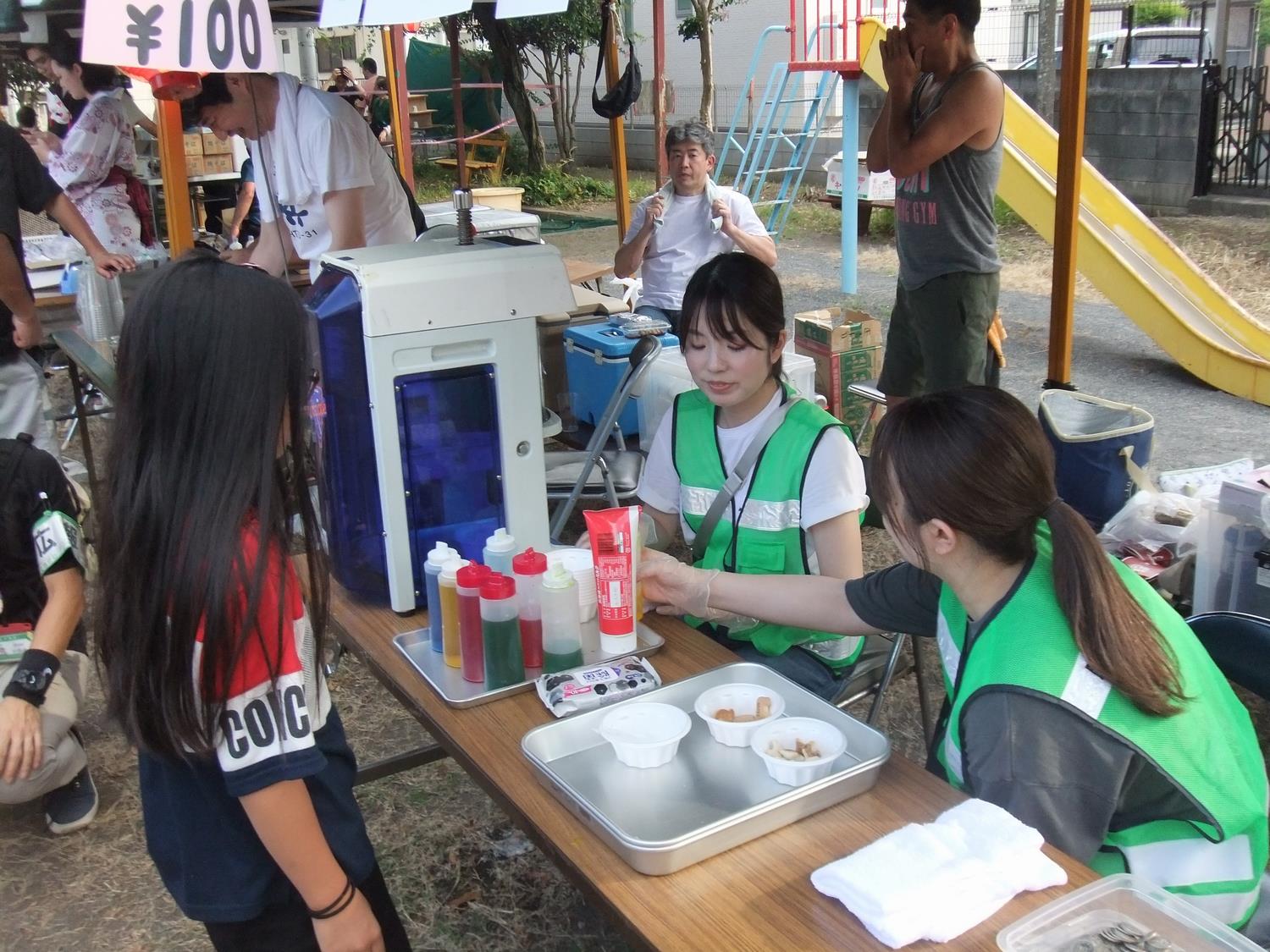 どちらの会場も多くの方で賑わう中、職員地域情報コーディネーターは、焼きそば作り・販売やかき氷作り・販売を手伝いました。地域に住む多くの方々とコミュニケーションを図ることは、通常の業務中では得難い体験となりました。