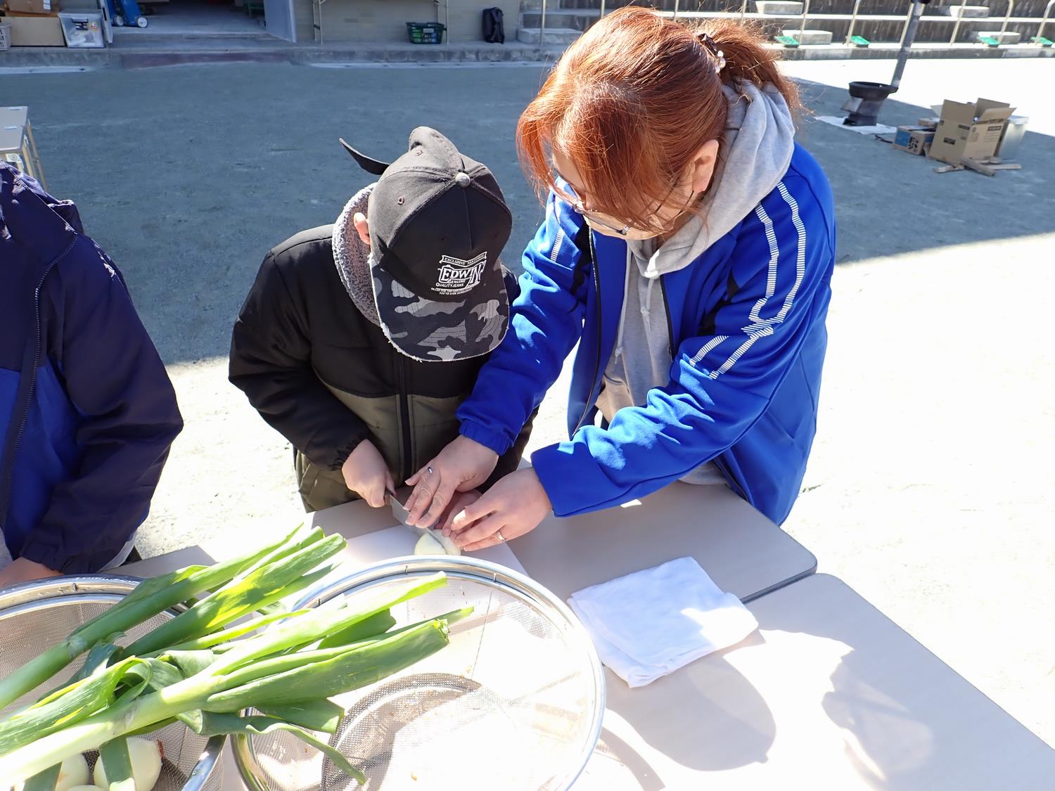 また、防災窯やかまどを使ってご飯や豚汁を作りました。子ども達は野菜を切るなど、いろいろな手伝いをしてくれました。