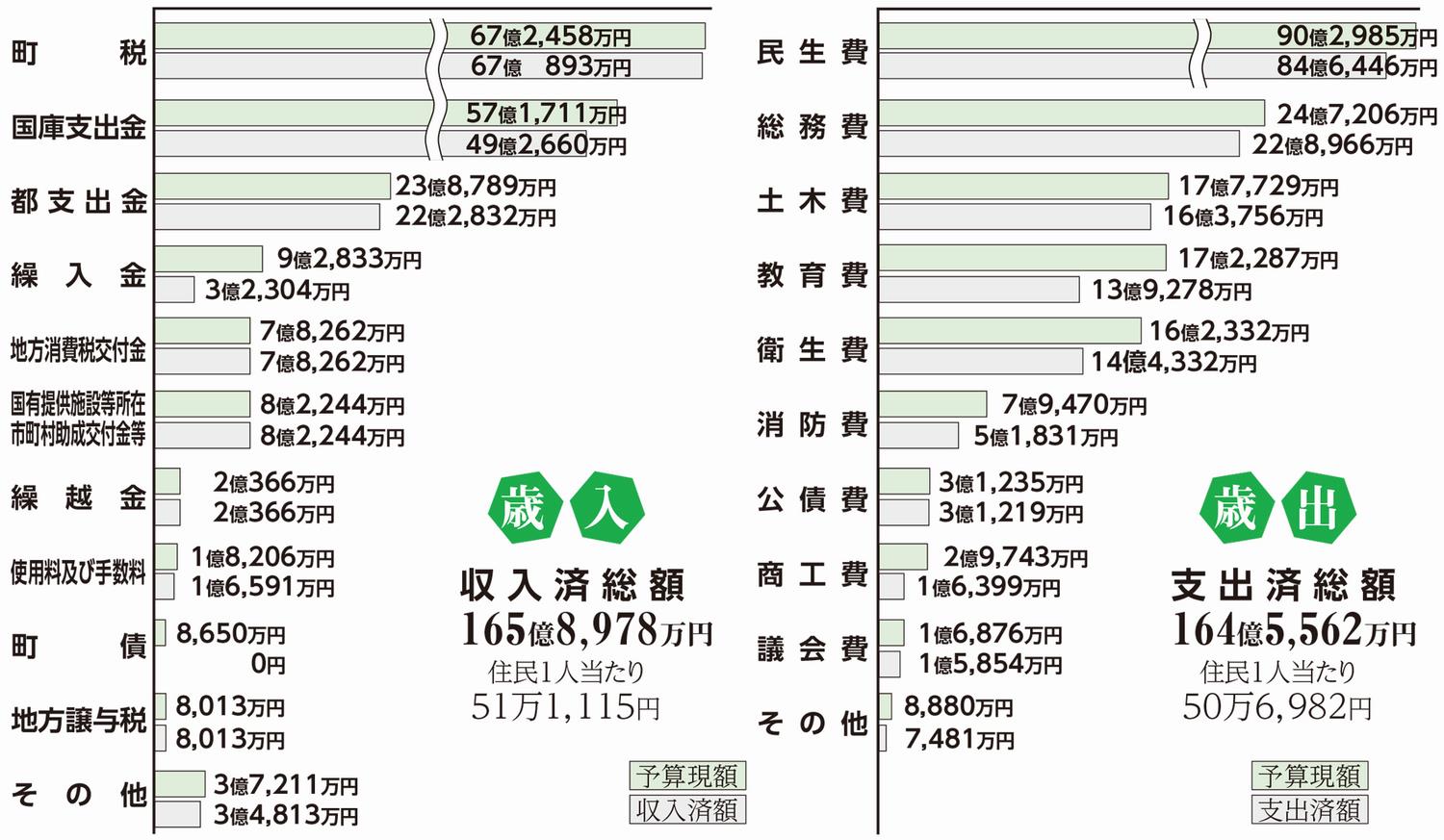 ※住民1人当たりの額は令和3年3月31日現在の人口(32,458人)で割った金額です。