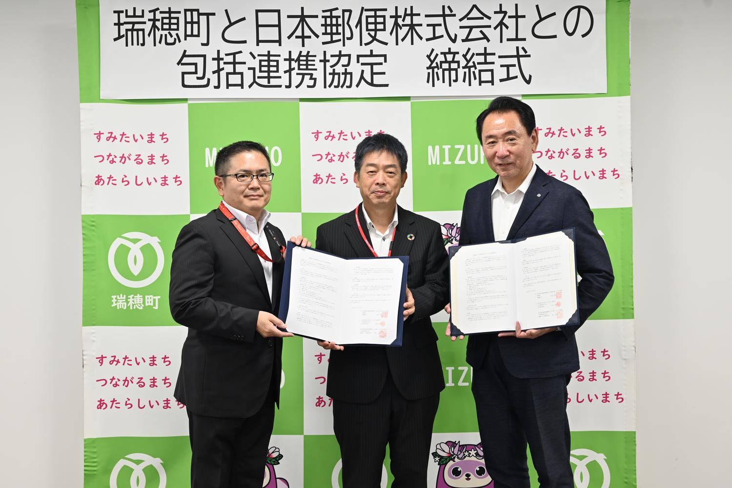 町は、日本郵便株式会社と相互に連携し、両者の発展に資するとともに、地域の活性化および住民サービスの更なる向上を図るため、令和5年度から開始した協働の窓口(みずほマッチング)の支援などにより、包括連携協定を締結しました。