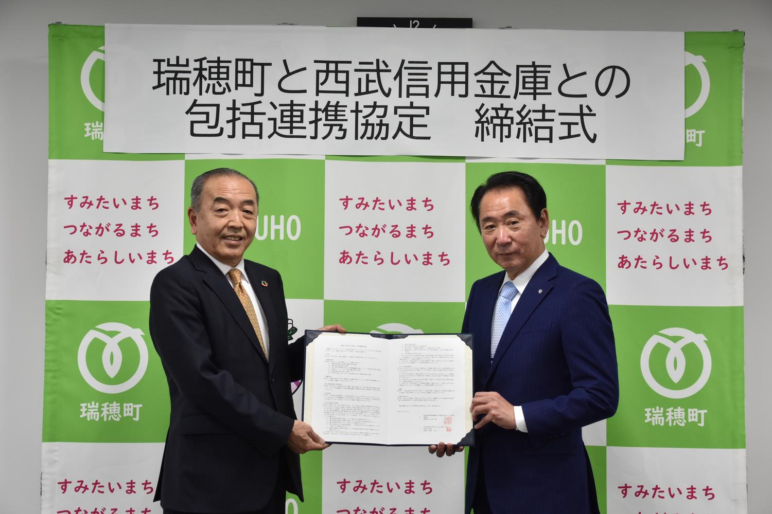町は、西武信用金庫と互いに連携・協力し、地域社会の発展に寄与することを目的に包括連携協定を締結しました。